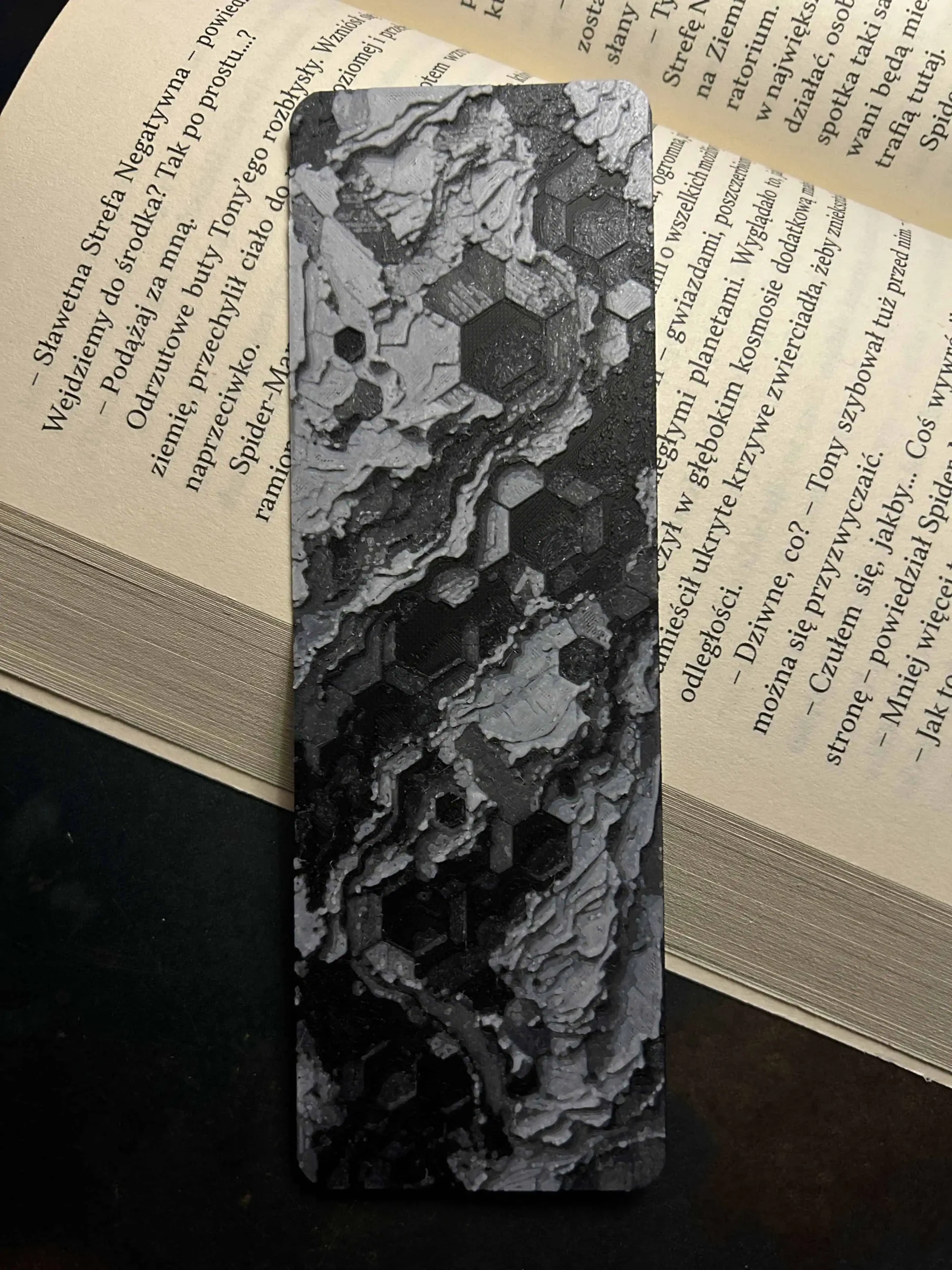 Tak, zakładka ma delikatną, estetyczną strukturę warstw druku 3D, świetnie wygląda i daje przyjemny „designerski” efekt.